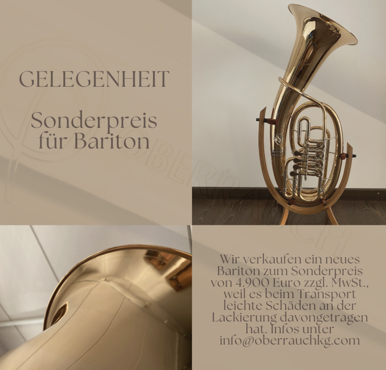 The b-trumpet Unterland with Meilschmidt valves (MS 40) is gold plated and has 2 claps. The price is about 4.200 Euro VAT included.